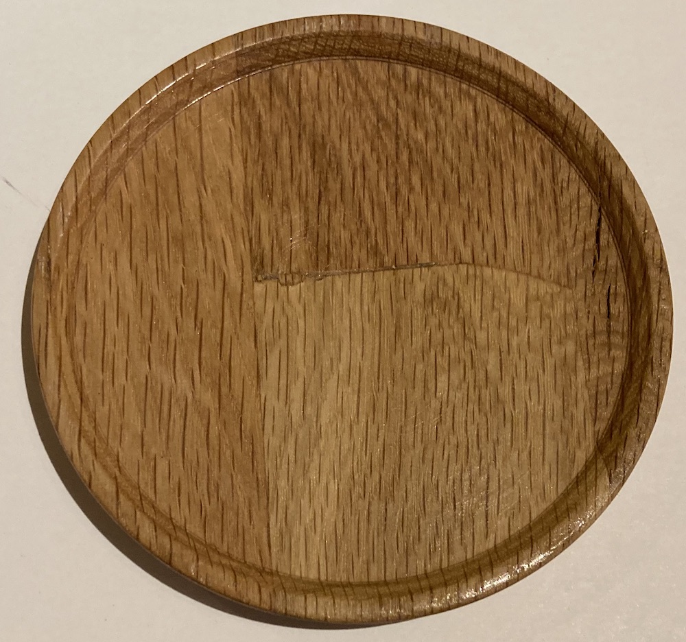 Mini-disken er hånddreid i tre og laget hjemme, noe som gjør hver disk unik i form, struktur og uttrykk. Den er lett å ta med i lomma og passer godt til både trening og turnering.